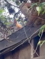 While the others run, this squirrel stays to defend his roost against the hawk hunting them. 💪
