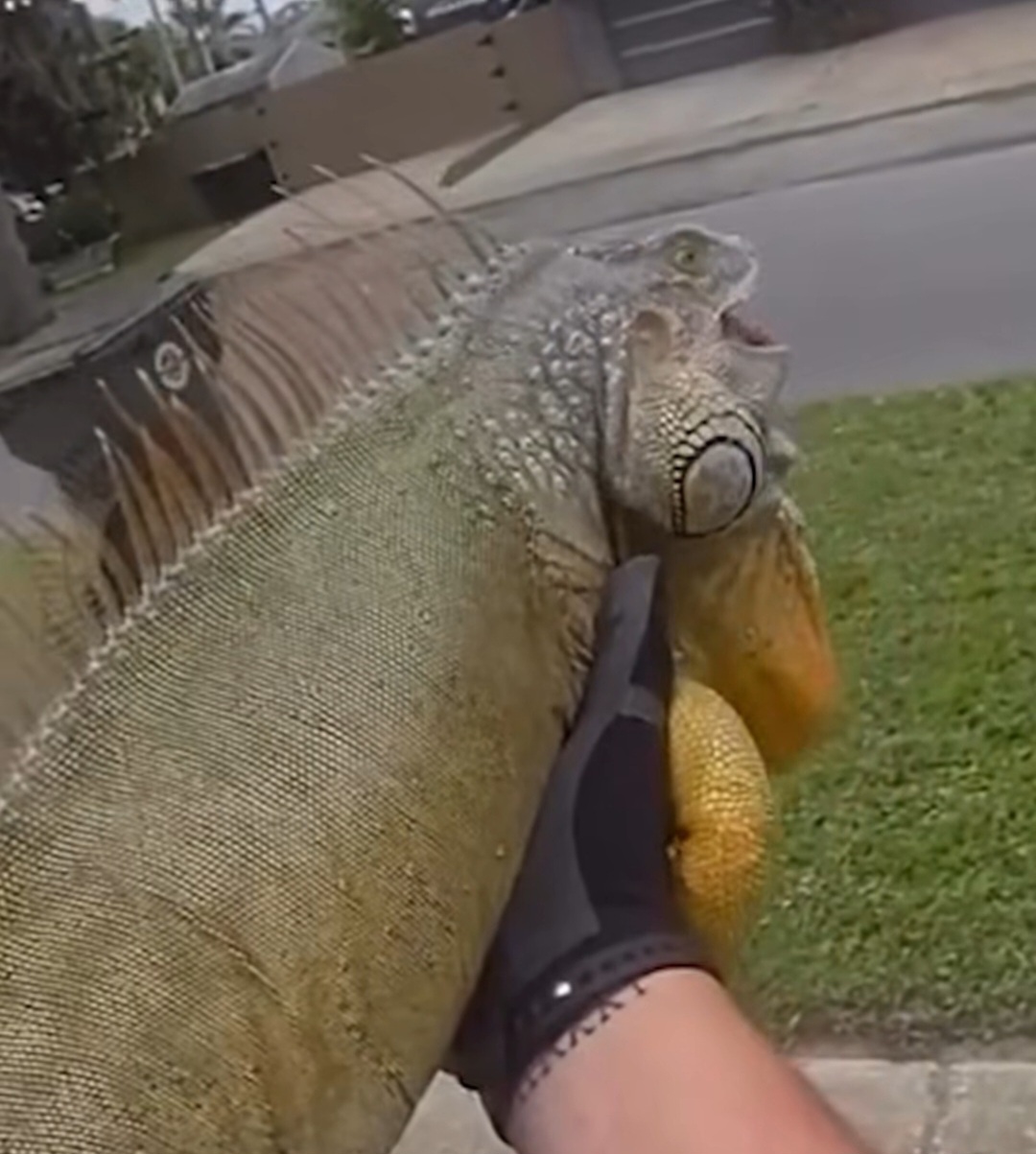 Daytona police called for massive Iguana on the loose running through neighborhood.